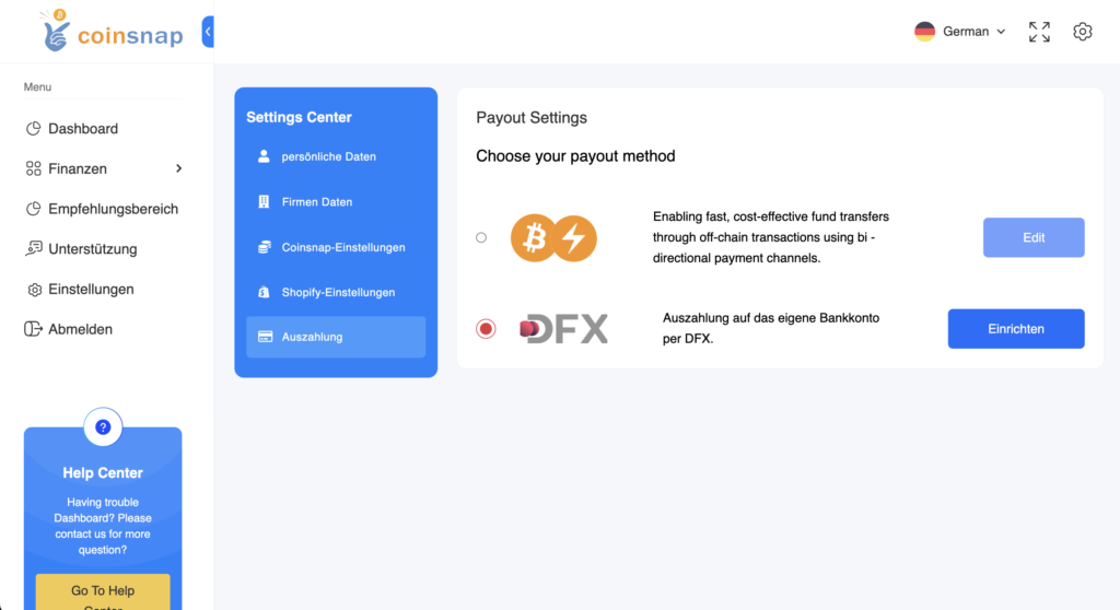 Diese Spalte zeigt den Betrag, der nach Abzug der Coinsnap-Gebühr an den Händler ausgezahlt wird. Der Auszahlungsbetrag wird wie folgt berechnet: Auszahlungsbetrag = Rechnungsbetrag – Coinsnap-Gebühr.