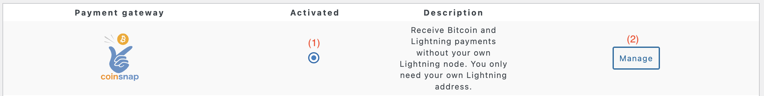 (1) Coinsnap als Zahlungsgateway aktivieren