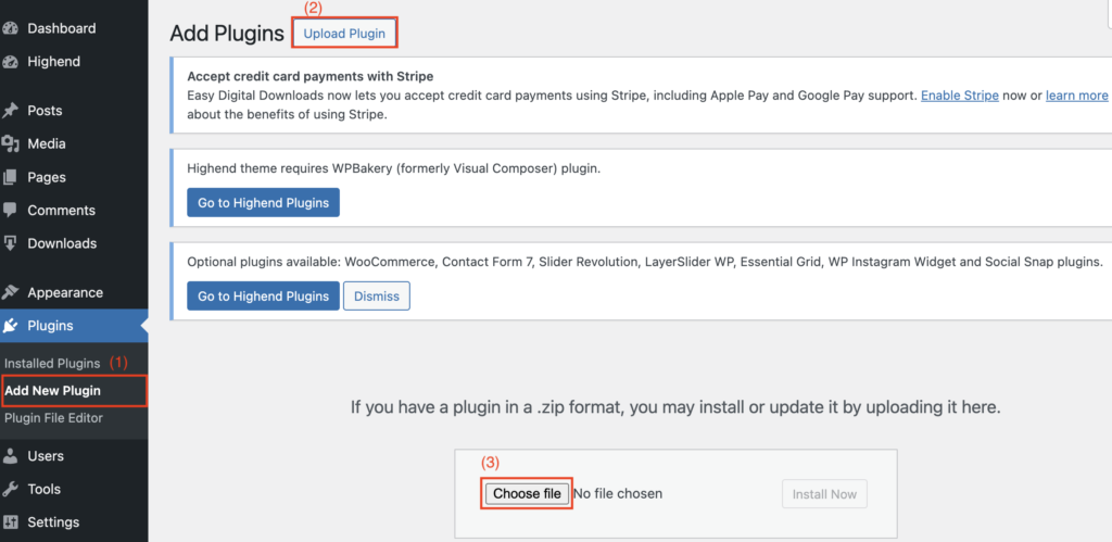 Auf der WordPress-Login-Seite findest Du auf der linken Seite den Bereich „Plugin“. Navigiere zum Unterabschnitt „Add New Plugin“.