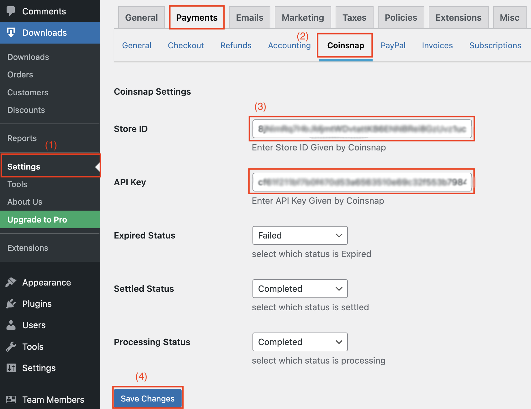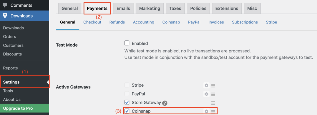 Coinsnap für Easy Digital Downloads Zahlungsmodul