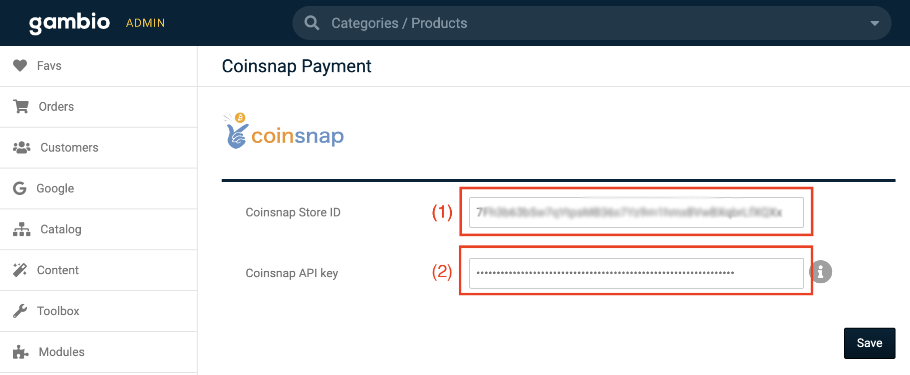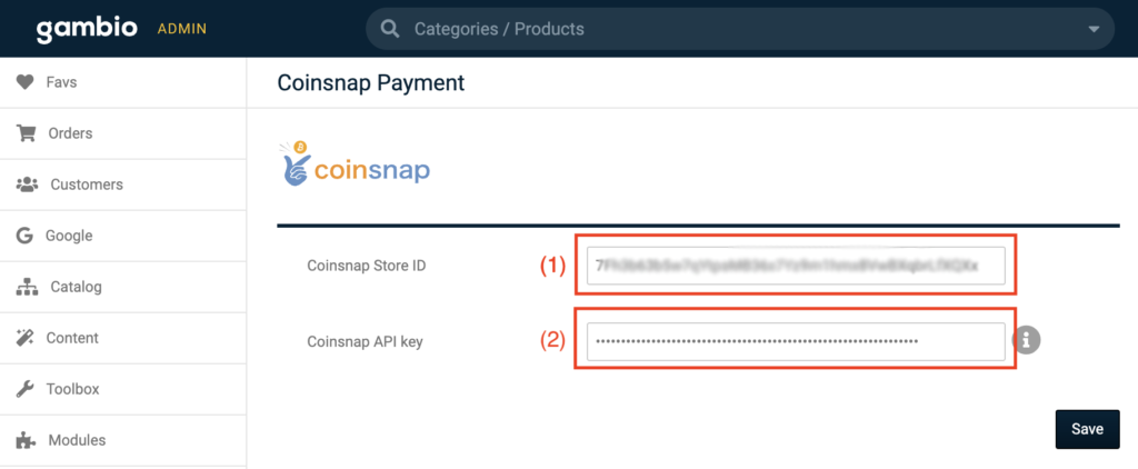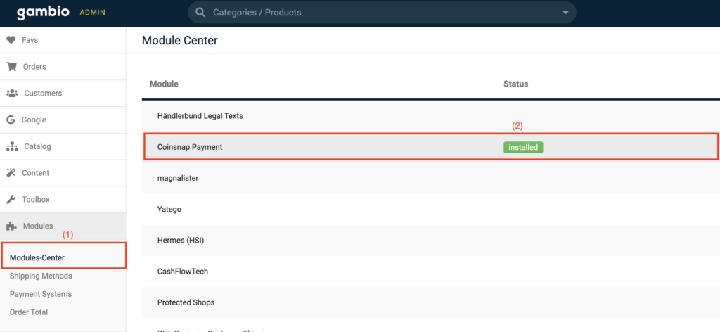 Das Modul lässt sich einfach und schnell in die Shopsoftware Gambio implementieren. Bei Fragen und Problemen steht der kostenlose Support von Coinsnap zur Verfügung.