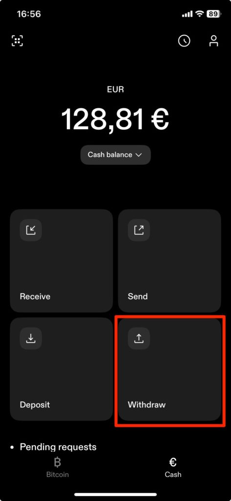 Один из них — Bitcoin Wallet с нашим балансом биткоинов, а другой — кошелек Cash с нашим местным фиатным балансом. Фиатный баланс хранится в моей местной валюте и, например, в долларах США для пользователей из США и в евро или в валюте, в которой вы живете, для пользователей из Европы.