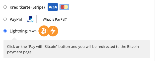 Ваши клиенты будут проинформированы о том, что они могут оплачивать покупки с помощью Lightning в дополнение к биткойну и другим криптовалютам. Продажи ваших клиентов, которые платят с помощью Lightning в вашем интернет-магазине, зачисляются непосредственно на ваш собственный Lightning Wallet.